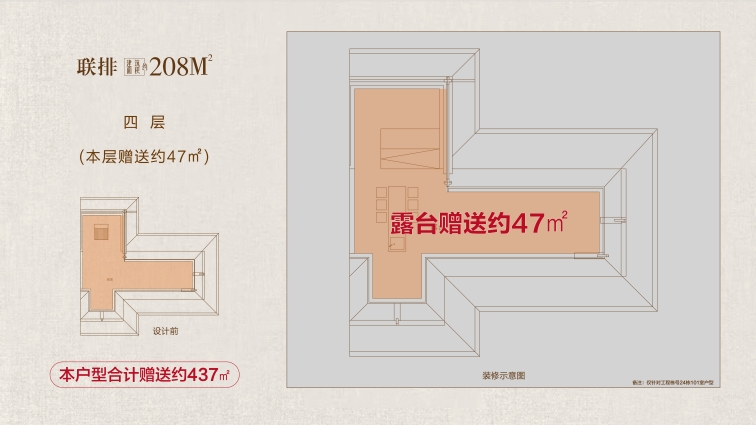 208戶型鑒賞: 大花園:戶均擁有約120㎡以上私屬庭院,可打造花園、茶室或親子活動空間,延伸生活詩意 三開間:約10.7米南向面寬,首層層高約3.6 米,采光通風(fēng)俱佳,營造朗闊起居格局。 高附贈:地下室面積約108㎡,約 5.5 米挑高,可隔成兩層,打造影音室、健身房、酒窖等多元功能區(qū);一層餐客廳挑空,可拓展約43㎡贈送空間;二層、三層配備景觀露臺,陽臺半贈送;四層星空露臺全贈送,解鎖生活多重想象。