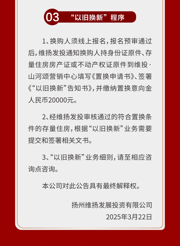 隨著培土奠基儀式的完成,維投·山河序正式駛?cè)虢ㄔO(shè)快車道,項目即將開售。結(jié)合維揚發(fā)投推出的以舊換新3.0政策,多維度降低了改善門檻。項目以墅質(zhì)產(chǎn)品哲學(xué),呼應(yīng)城市奮斗者對品質(zhì)人居與生活理想的雙重追求,以國企匠心為揚州人居史鐫刻濃墨重彩的“山河序章”。